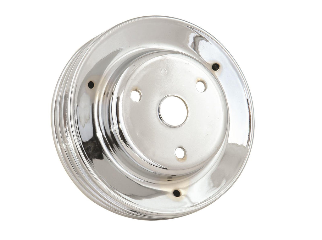Replace your stock engine pulleys with a pair of chrome plated steel crank pulleys from Mr. Gasket. These pulleys are highly polished and then chrome plated for lasting beauty.Brand: Mr. Gasket