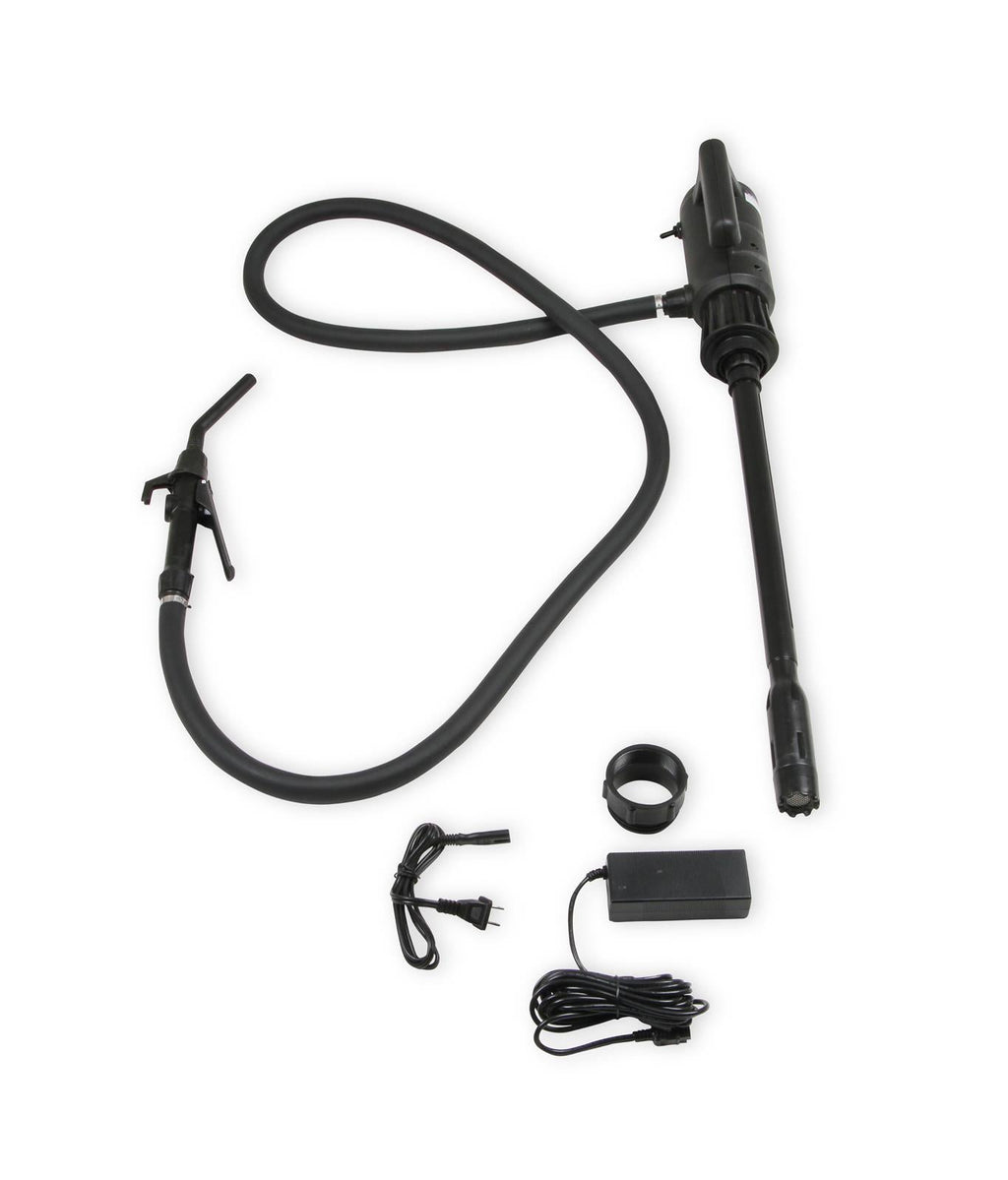 Mr. Gasket electric transfer pumps eliminate the need for hand cranks. They're electrically powered, so just plug one into any 120 V outlet—or you can use the bonus harness with clips for connection to a 12 V battery. The suction pipe telescopes from 33.5 in. to 49 in., allowing one pump to be used on metal or plastic drums from 15 to 55 gallons. These transfer pumps are compatible with ethanol, methanol, DEF, washer fluid, detergent, water based media, agricultural chemicals, and light oils. These electric transfer pumps are not just for getting alcohol fuels into a race car; they can be used at the shop, on the farm, or in the yard. The included discharge hose is 6 1/2 ft. long and has a full control nozzle with easy on/off. Instructions are also included with the electric transfer pump.Brand: Mr. Gasket