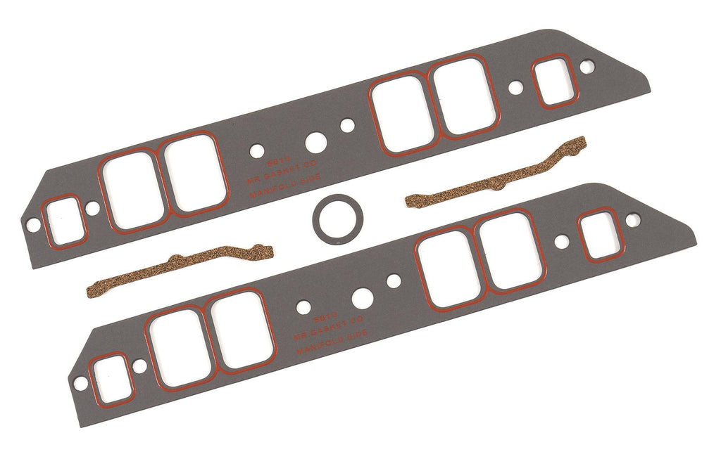 Mr. Gasket Ultra-Seal gasket sets are made of a cellulose/nitrile material that is less compressible for excellent sealing and durability. This material has an anti-stick coating, plus a silicone bead around each intake port, except where noted, for a tight, leakproof seal. These gaskets are the perfect solution for intake-sealing problems associated with the small sealing areas between ports, and the different expansion rates of intake manifolds and cylinder heads. The choice of champions, these sets come complete with all necessary seals and can be trimmed to fit modified ports where needed.Brand: Mr. Gasket