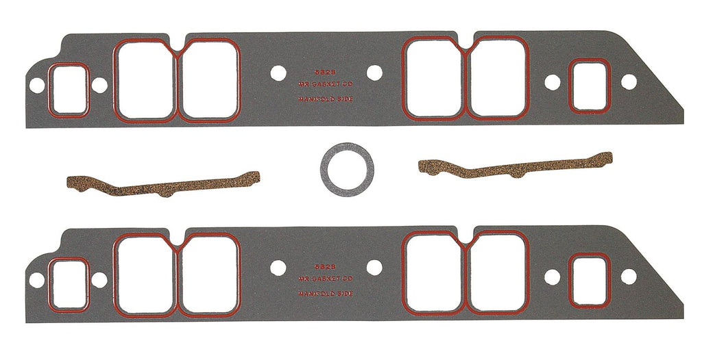 Mr. Gasket Ultra-Seal gasket sets are made of a cellulose/nitrile material that is less compressible for excellent sealing and durability. This material has an anti-stick coating, plus a silicone bead around each intake port, except where noted, for a tight, leakproof seal. These gaskets are the perfect solution for intake-sealing problems associated with the small sealing areas between ports, and the different expansion rates of intake manifolds and cylinder heads. The choice of champions, these sets come complete with all necessary seals and can be trimmed to fit modified ports where needed.Brand: Mr. Gasket