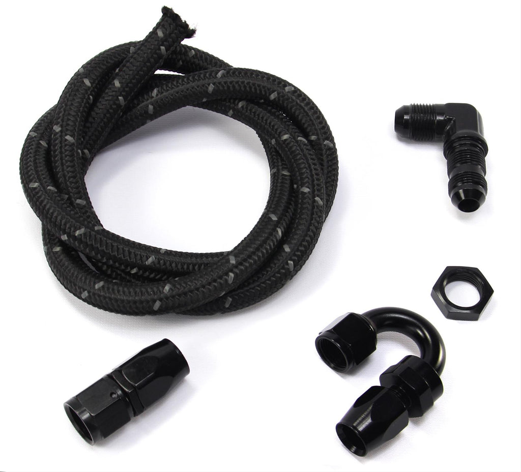 Notes: Includes one 180 degree hose end, one straight hose end, and one 90 degree bulkhead fitting for installation.