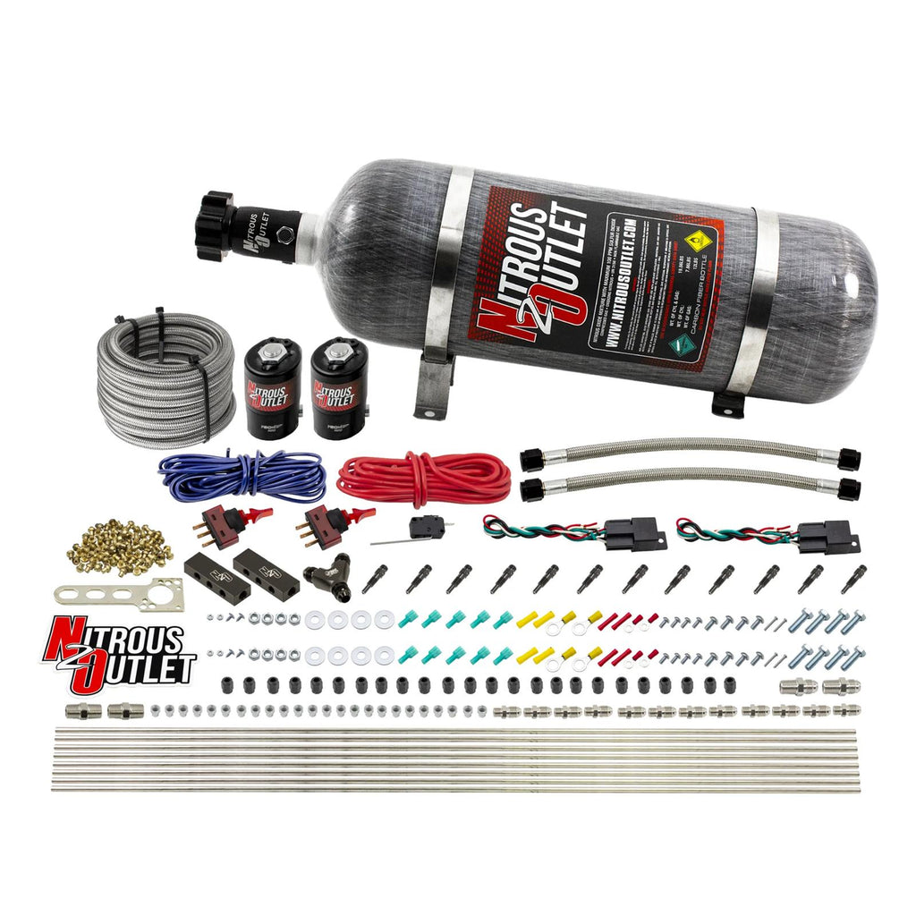 Notes: Kit comes with two nitrous solenoids, 6 nozzles, 16.000 ft. of hard line, all jetting, hardware, electrical components, and compact distribution blocks.