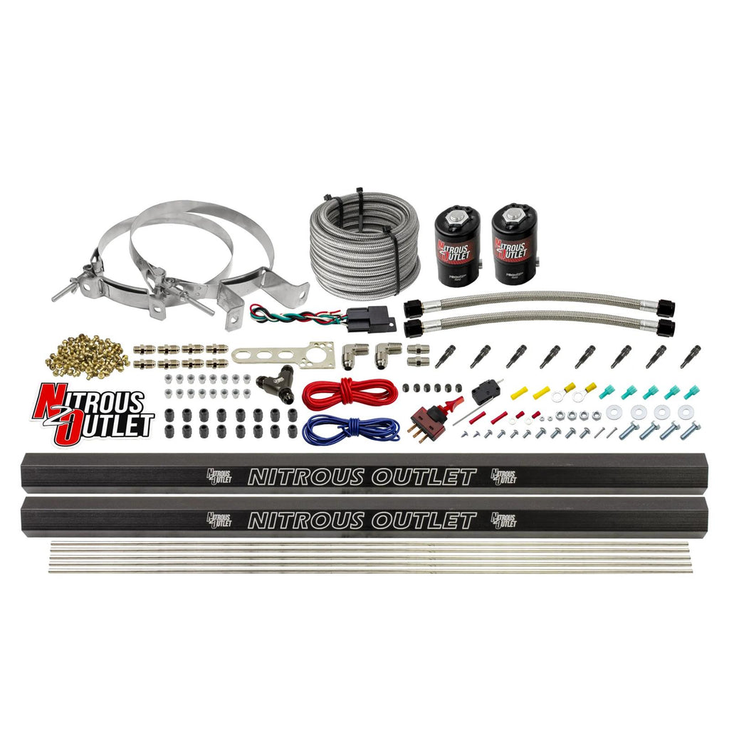 Nitrous Outlet direct port nitrous systems are designed to be high-flowing for high-horsepower applications. These systems come with one nozzle per cylinder—capable of flowing 200 hp each—providing the most dependable way to ensure equal distribution of nitrous and fuel in each cylinder. The direct port systems are fully customizable, letting you personalize a nitrous setup based on your fuel type, fuel pressure, nozzle type, bottle size, and solenoids. If you need a high-horsepower nitrous application for your vehicle, you've come to the right place. Nitrous Outlet direct port nitrous systems will give you everything you can handle.