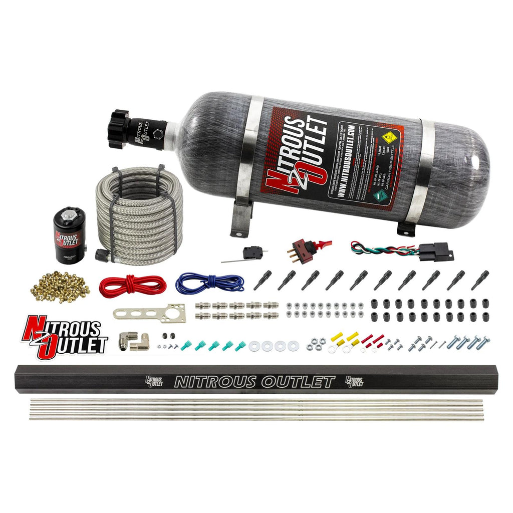 Nitrous Outlet direct port nitrous systems are designed to be high-flowing for high-horsepower applications. These systems come with one nozzle per cylinder—capable of flowing 200 hp each—providing the most dependable way to ensure equal distribution of nitrous and fuel in each cylinder. The direct port systems are fully customizable, letting you personalize a nitrous setup based on your fuel type, fuel pressure, nozzle type, bottle size, and solenoids. If you need a high-horsepower nitrous application for your vehicle, you've come to the right place. Nitrous Outlet direct port nitrous systems will give you everything you can handle.