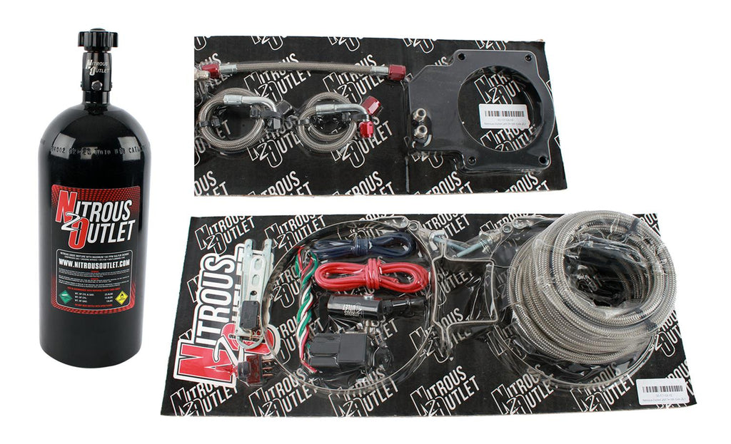 Nitrous Outlet nitrous oxide hardline plate systems arrive out of the box ready to deliver superior atomization. These systems come with a hardline from the solenoids. Like the softline systems, they spray up to 200 hp, but are capable of flowing up to 400 hp with additional jetting and a -6 AN main feed line upgrade. You'll get race-proven performance from the unique 6-port discharge design, guaranteeing the perfect mixture of fuel to nitrous.