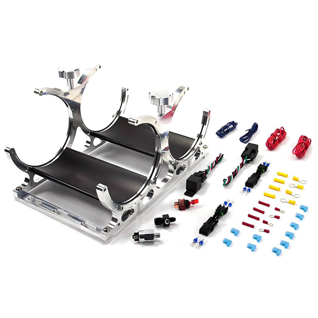 Notes: Vertical mount. Automatic heated bottle bracket with -4 AN manifold size. Includes pressure switch, manifold, wiring and hardware.