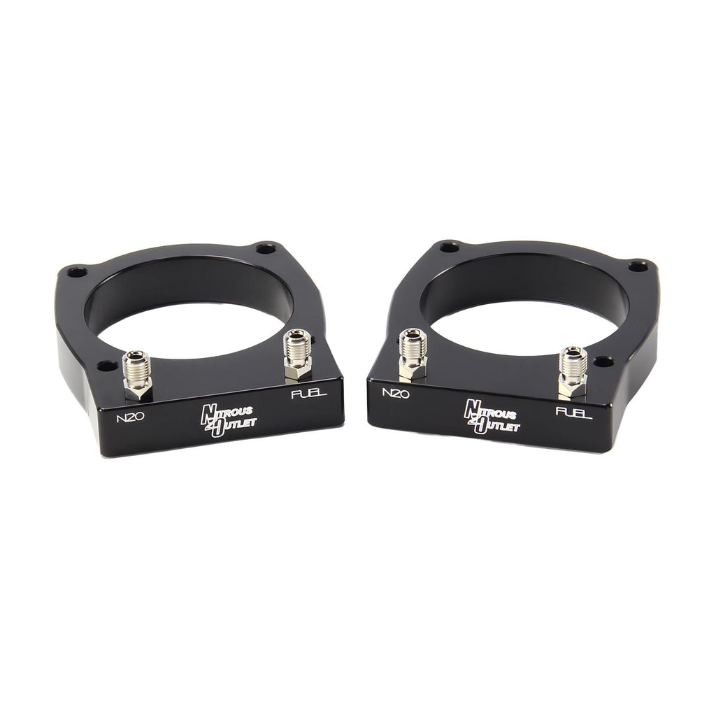 Nitrous Outlet nitrous conversion kits upgrade your single nozzle wet system to a plate system. Machined from billet aluminum, black anodized, and CNC-engraved, these kits include all the needed hardware and jetting to make your conversion easier. The injection plates have six specially designed nitrous and fuel discharge ports that completely saturate the air intake charge with the best atomized mixture possible. All plates are flow-tested to ensure proper performance. They work with any brand wet system and have -3 AN inlet fittings for fuel and nitrous. Order the kit recommended for your vehicle.Brand: Nitrous Outlet