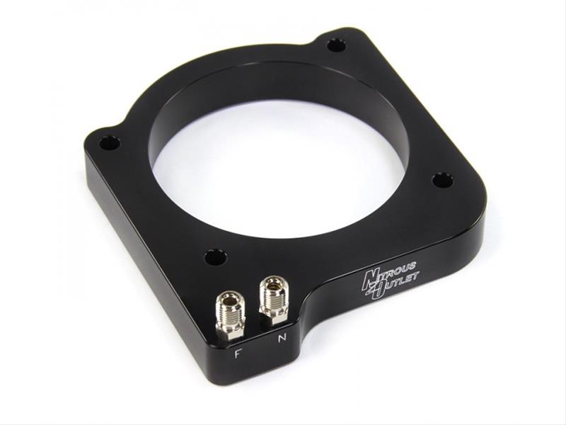 Nitrous Outlet nitrous conversion kits upgrade your single nozzle wet system to a plate system. Machined from billet aluminum, black anodized, and CNC-engraved, these kits include all the needed hardware and jetting to make your conversion easier. The injection plates have six specially designed nitrous and fuel discharge ports that completely saturate the air intake charge with the best atomized mixture possible. All plates are flow-tested to ensure proper performance. They work with any brand wet system and have -3 AN inlet fittings for fuel and nitrous. Order the kit recommended for your vehicle.Brand: Nitrous Outlet