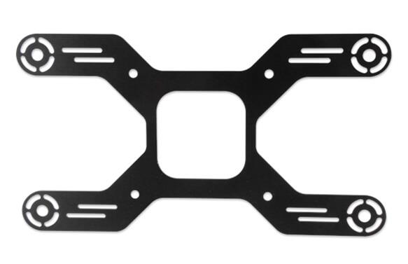 Notes: Quad mount design for both fuel and nitrous solenoids. Radial slots for 1.625 in. diameter solenoids and parallel slots for 1.00 in. diameter solenoids. Fits Holley 4150 style flanges.