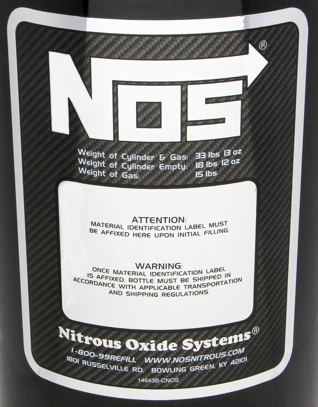 NOS offers DOT-approved nitrous bottles in a variety of sizes and finishes to suit your needs. The bottles come with an NOS/CGA-approved high-flow valve and built-in siphon tube. For extra safety, NOS has designed an exclusive blow-off venting system. If your bottle is overfilled or if pressure increases beyond the maximum safety level, the vent opens and discharges the nitrous into a safe place.Brand: Nitrous Oxide Systems (NOS)