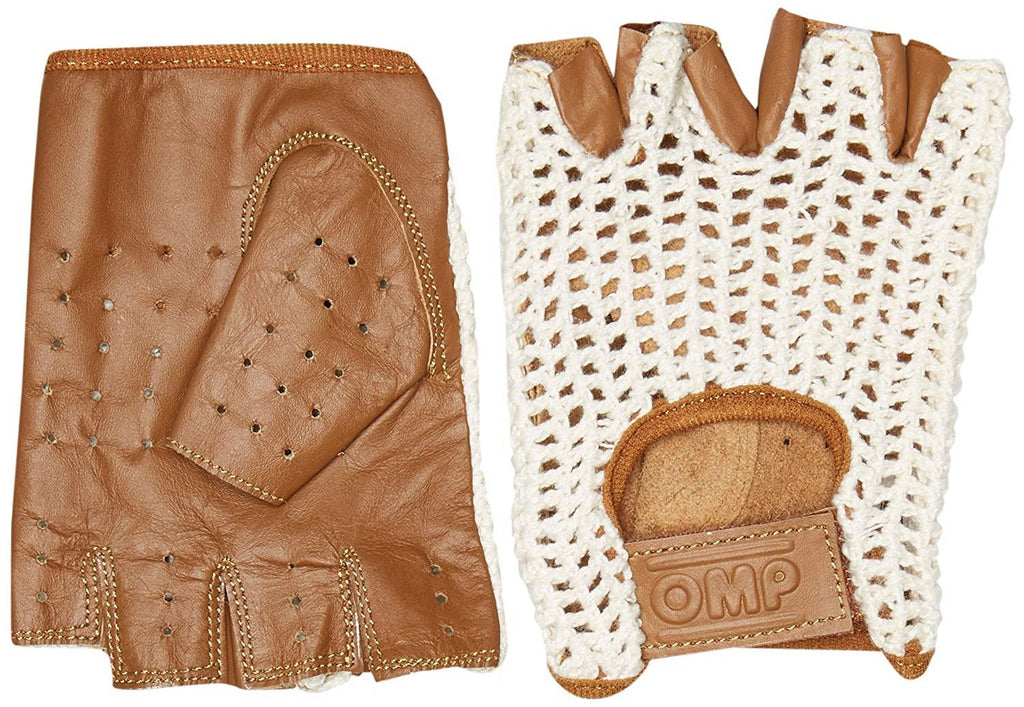 OMP Racing Tazio driving gloves offer vintage style in smooth leather and cotton fabric. Tazio gloves feature perforated leather palms stitched to cotton fishnet, wrapped with Velcro® straps and elastic wrist stops.