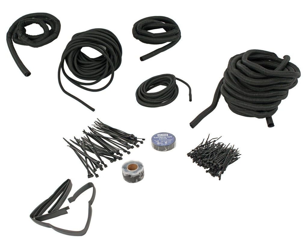 Notes: Includes: 15 ft of 1/8 in., 60 ft of ¼ in., 30 ft of ½ in.,10 ft of ¾ in., 6 ft of 1 in., 100 cable ties (4 in.),40 cable ties (8 in.) and two rolls of self vulcanized stretch and seal tape.
