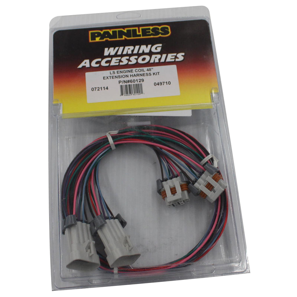 Painless Performance LS ignition coil wiring harness extensions get your coils off of the valve covers. With factory color-coded wires and weatherproof connectors, these harnesses make your job easier to accomplish. They're available in 2, 3, or 4 ft. pigtail lengths. Move your coils with Painless Performance LS coil extension harnesses.Brand: Painless Performance