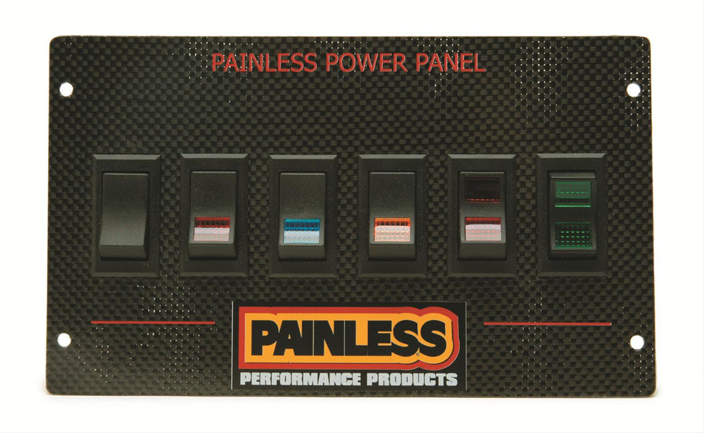 Painless Performance Mustang power panels are designed to fit in the position of your factory radio. They are made out of aluminum, come in a black finish, and are available with lighted rocker switches or toggle switches with LED indicators.Brand: Painless Performance