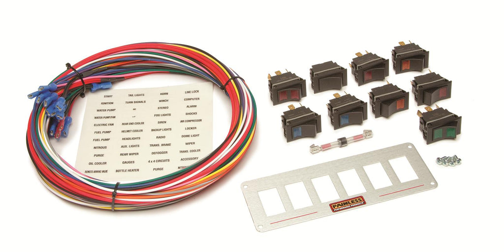 Painless Wiring switch panels clean up your dashboard wiring by putting all of your switches in one convenient, organized place. The panels come with 4, 6, or 8-toggle or rocker switches, they're available in fused and un-fused models, and are easy to install.Brand: Painless Performance