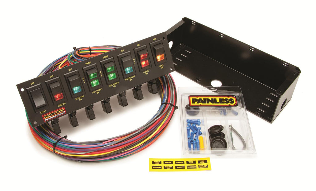 Painless Wiring switch panels clean up your dashboard wiring by putting all of your switches in one convenient, organized place. The panels come with 4, 6, or 8-toggle or rocker switches, they're available in fused and un-fused models, and are easy to install.Brand: Painless Performance