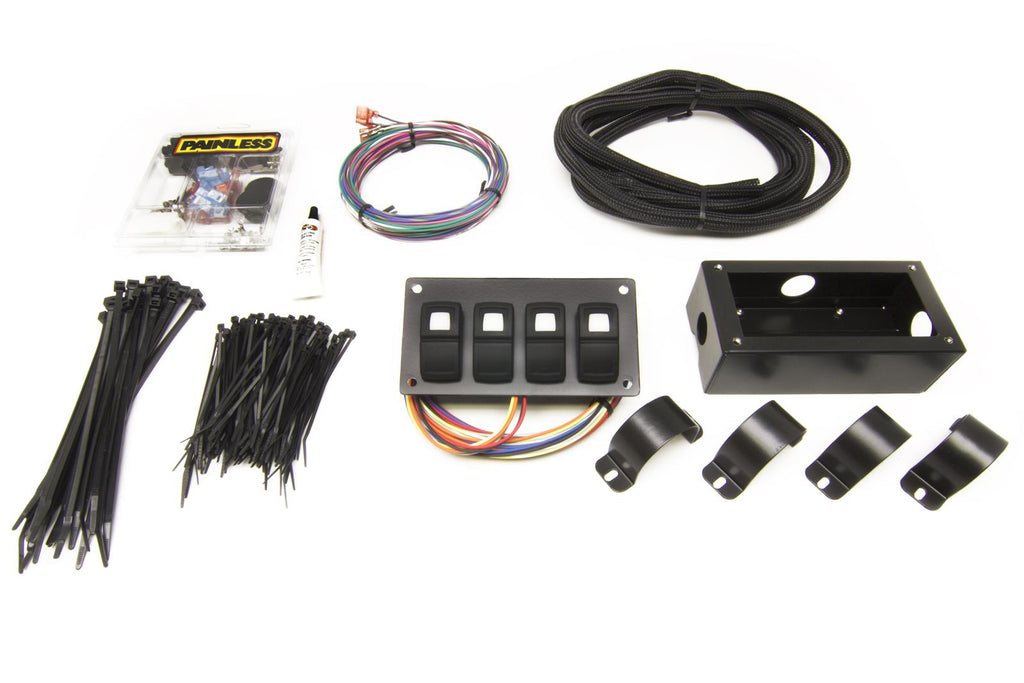 The Painless track rocker switch panels are as tough as any race you'll encounter. The weatherproof LED On/Off switches are enclosed in a powder-coated steel housing. Available in a 4, 6, or 8 switch option, with mounting options available for dash mount, roll bar mount (1 5/8" and 1 3/4"), or flanged under dash mount. Deigned to be plug-n-play with the Painless track rocker relay control system and includes everything required to install and mount.Brand: Painless Performance