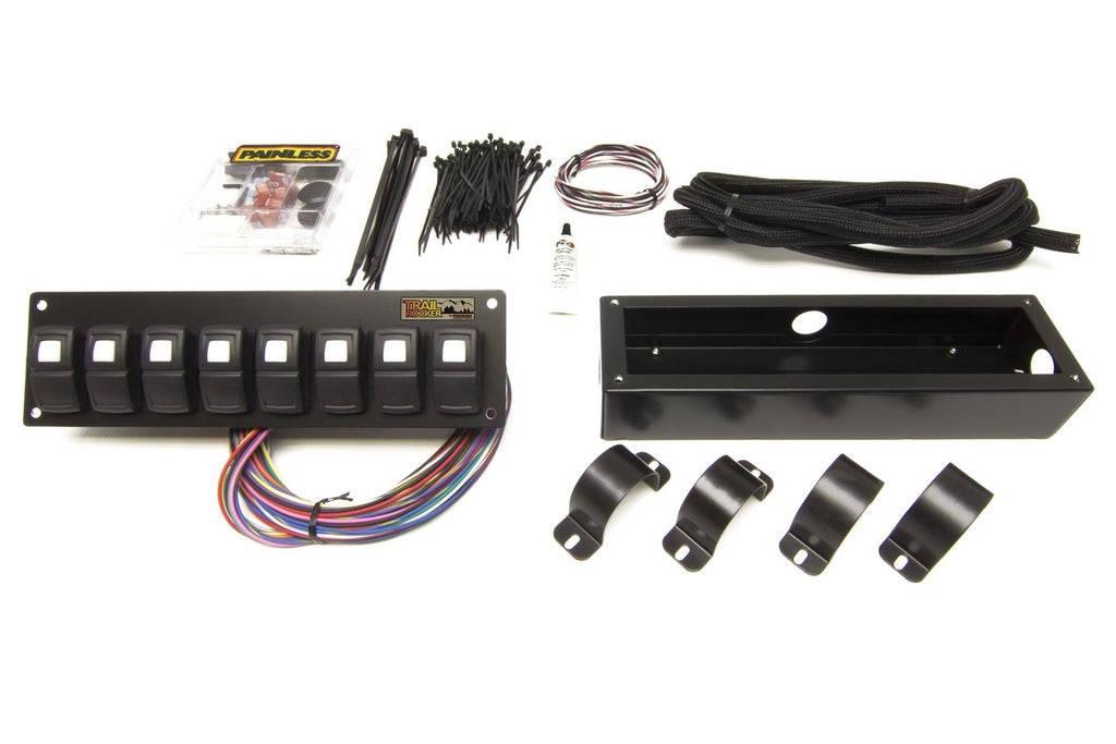 Painless Trail Rocker switch panels are as rugged as any trail you'll encounter. The weatherproof LED On/Off switches are enclosed in a powdercoated steel housing. They are available in 4-, 6-, or 8-switch panels with mounting options available for dash mount, roll bar mount (1 5/8 in. and 1 3/4 in.), or flanged under dash mount. Designed to be plug-and-play with the Painless Trail Rocker systems, the panels include optional winch wiring. Kits include everything required to install and mount.Brand: Painless Performance