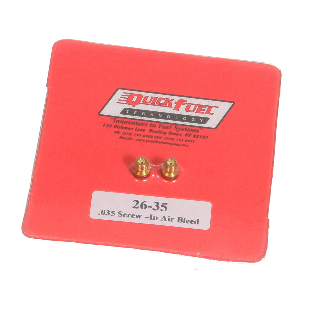 Quick Fuel air bleeds are what you need to fine-tune your carburetor for a consistent showing, run after run. These high-quality precision brass air bleeds are threaded for easy screw-in installation and removal. They are available in many sizes to effectively and efficiently determine the amount of air you want coming into your carburetor. Choose Quick Fuel air bleeds to assist you in optimizing the operation of your carburetor.