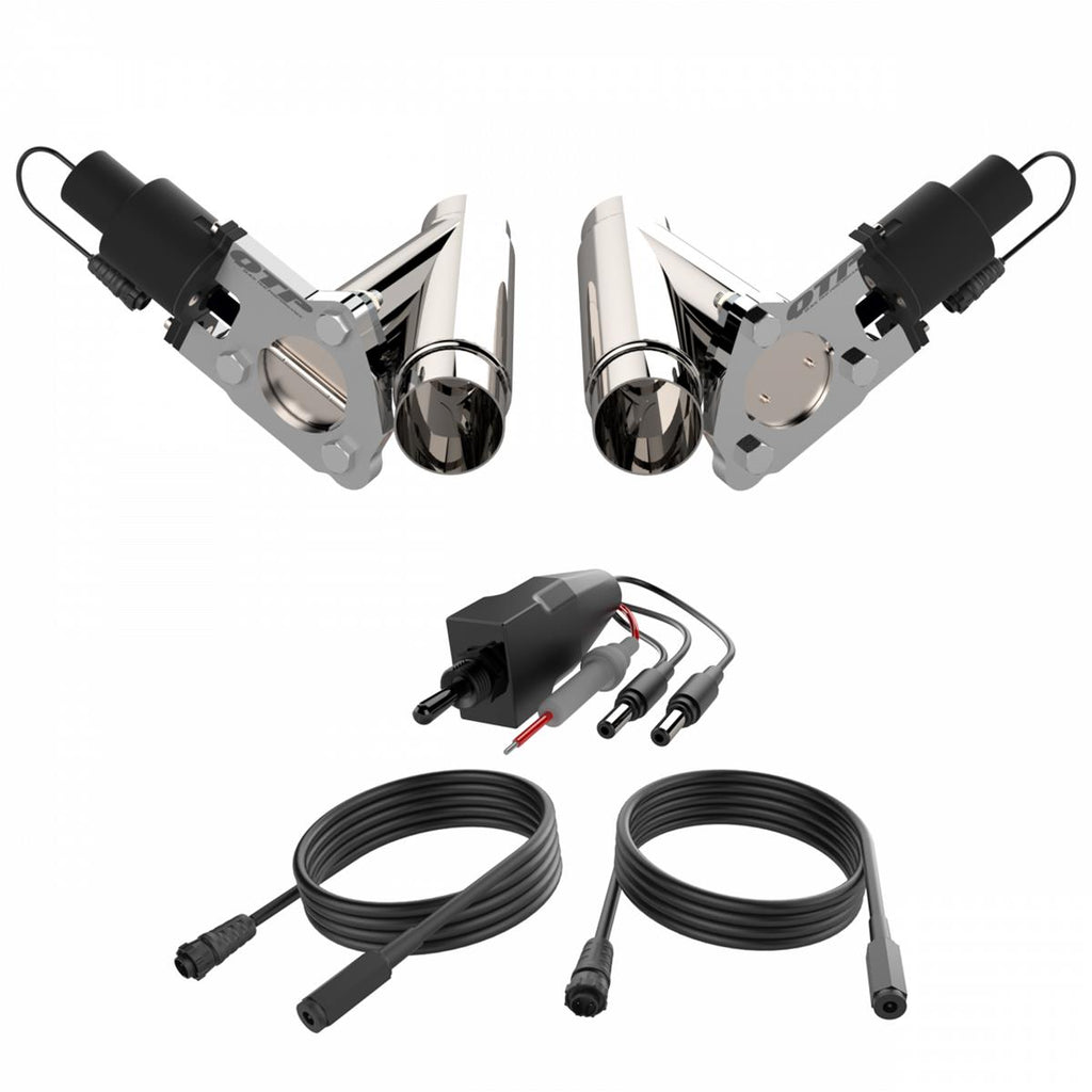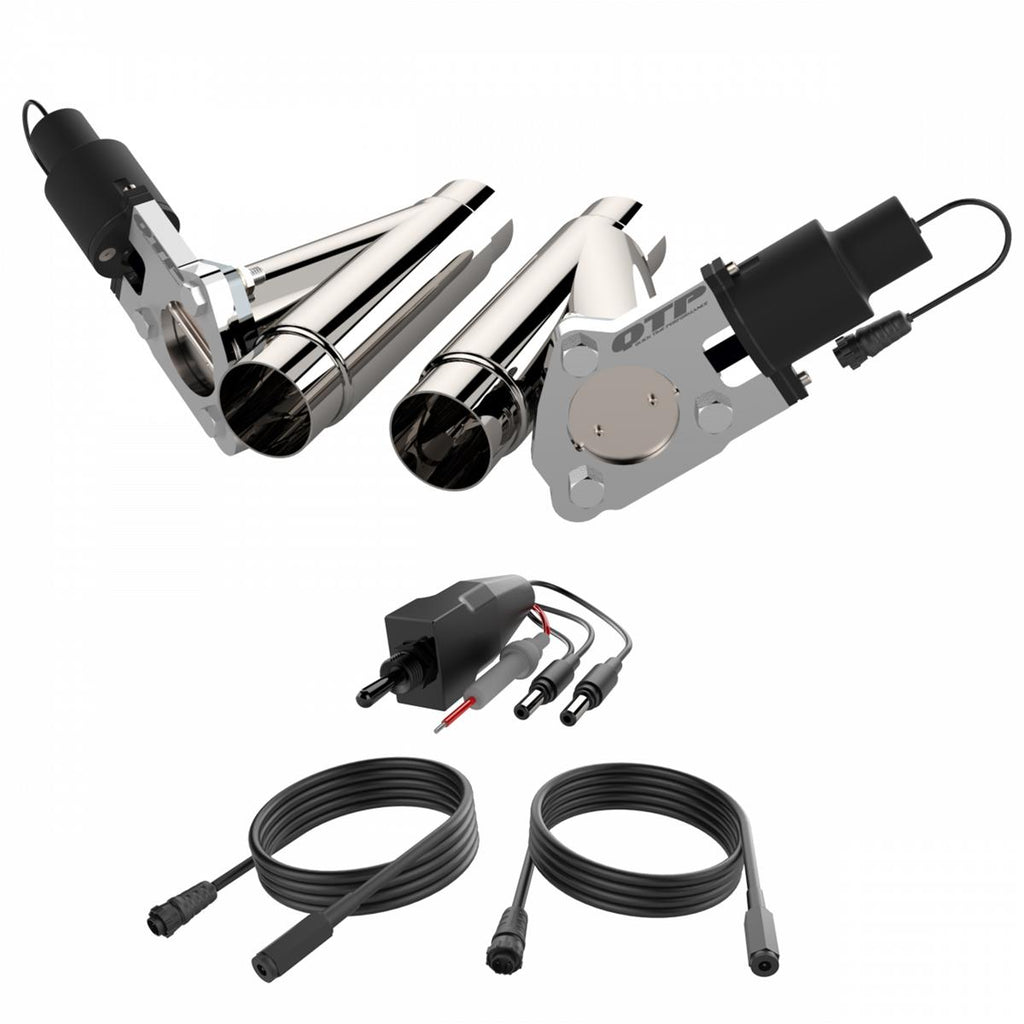 With Quick Time electric cutouts, you can have the best of both worlds--they're quiet for the street and wide-open for the strip. These electrically controlled exhaust valves bolt to standard cutouts and can be opened and closed from inside of the car with the flip of a switch. Using the convenient interior-mounted switch, you can go from stealth-quiet to wide-open power. You control the volume and the flow. Quick Time exhaust cutouts fit any car or truck, from old-school musclecars to high-tech imports.