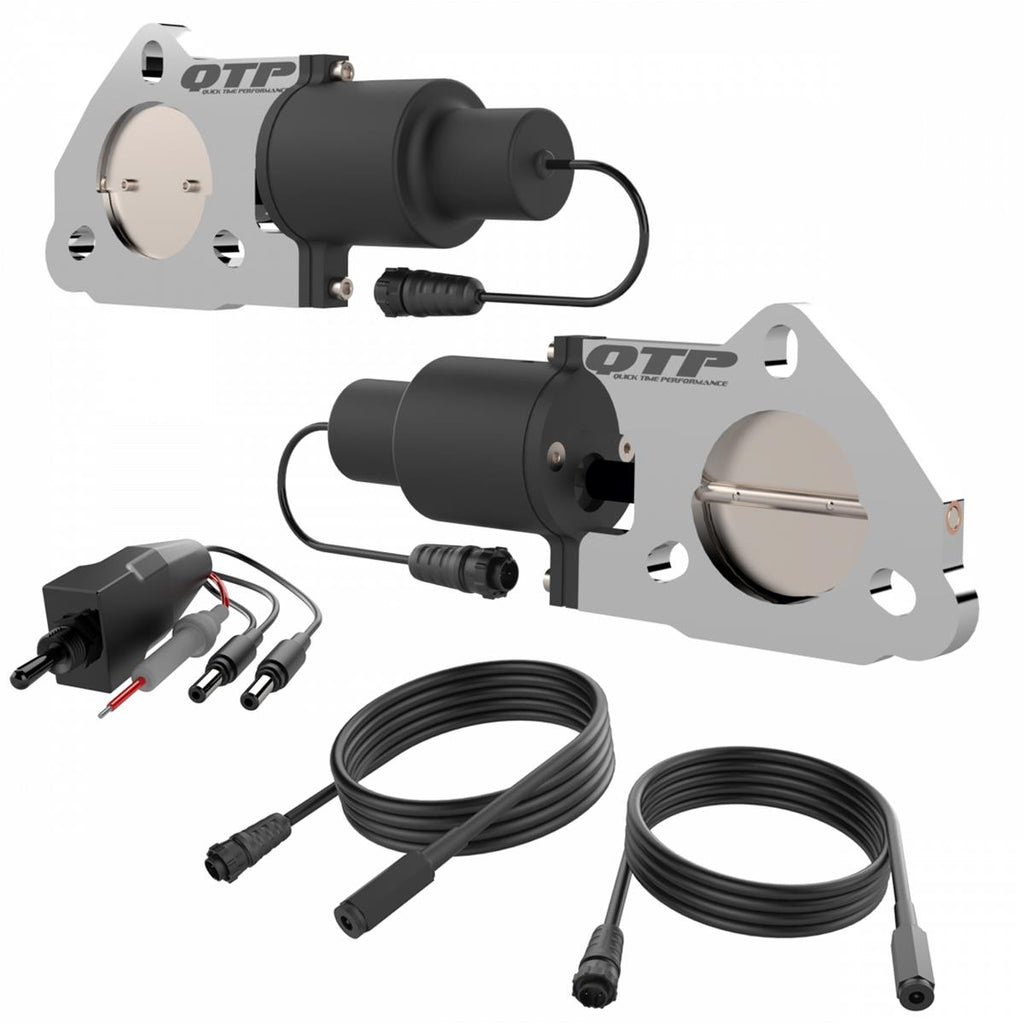 With Quick Time electric cutouts, you can have the best of both worlds--they're quiet for the street and wide-open for the strip. These electrically controlled exhaust valves bolt to standard cutouts and can be opened and closed from inside of the car with the flip of a switch. Using the convenient interior-mounted switch, you can go from stealth-quiet to wide-open power. You control the volume and the flow. Quick Time exhaust cutouts fit any car or truck, from old-school musclecars to high-tech imports.