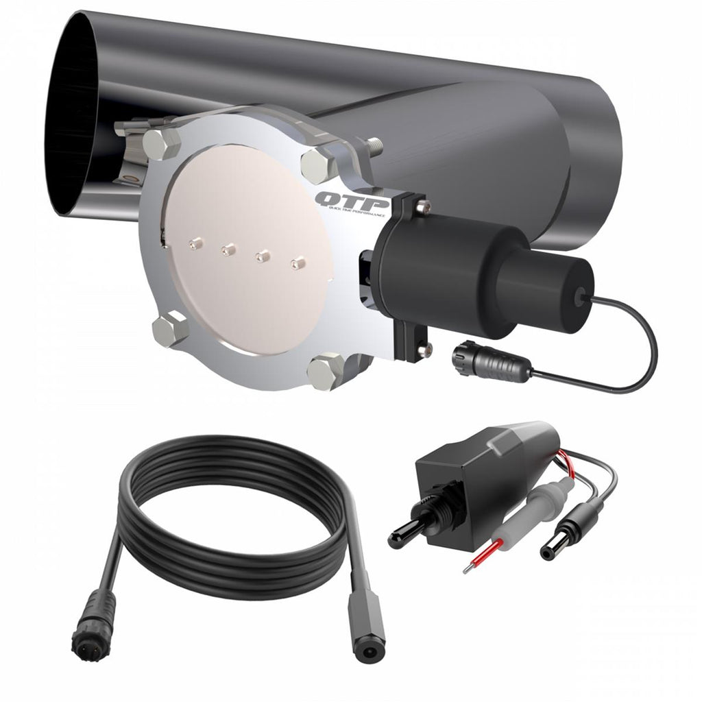 With Quick Time electric cutouts, you can have the best of both worlds--they're quiet for the street and wide-open for the strip. These electrically controlled exhaust valves bolt to standard cutouts and can be opened and closed from inside of the car with the flip of a switch. Using the convenient interior-mounted switch, you can go from stealth-quiet to wide-open power. You control the volume and the flow. Quick Time exhaust cutouts fit any car or truck, from old-school musclecars to high-tech imports.