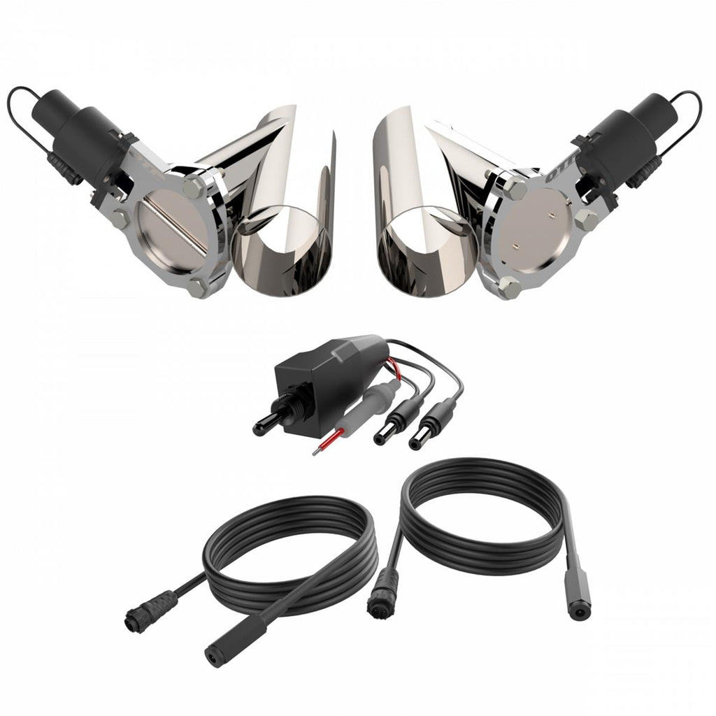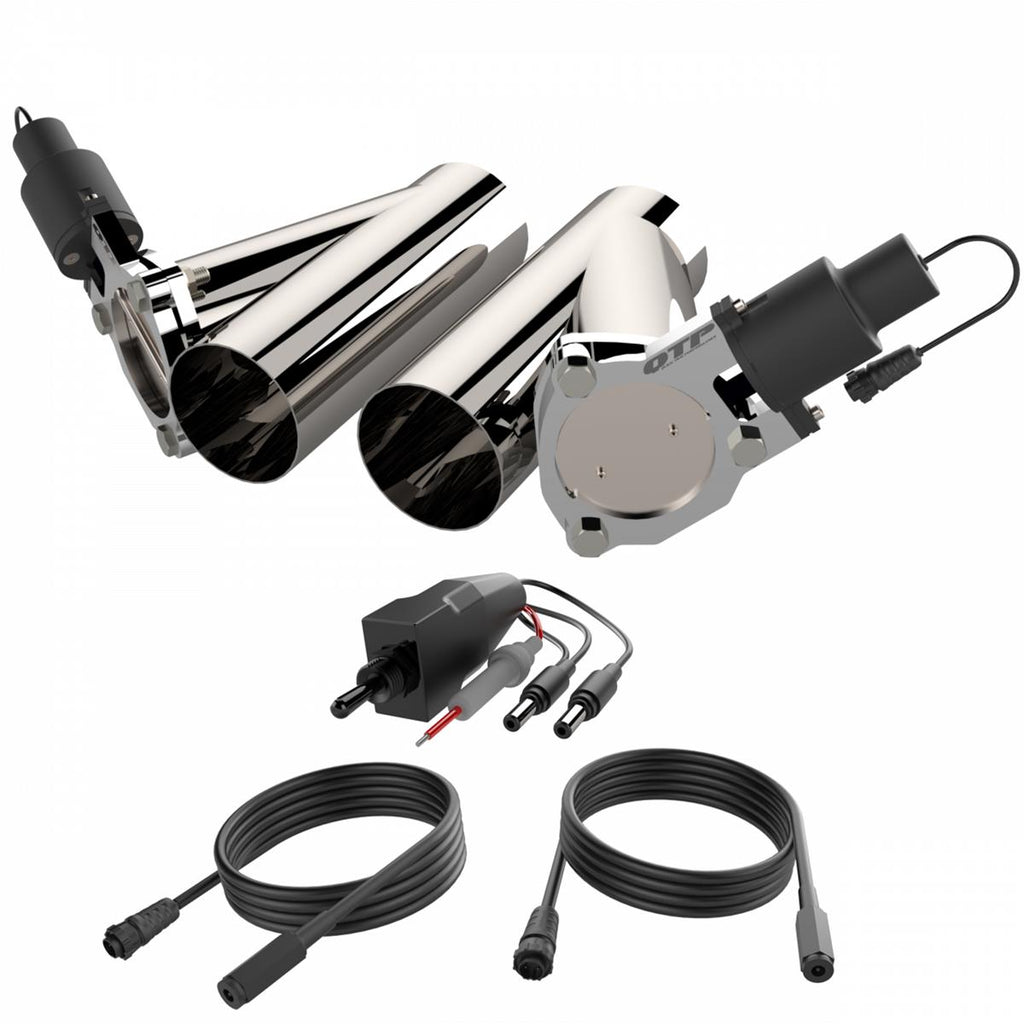 With Quick Time electric cutouts, you can have the best of both worlds--they're quiet for the street and wide-open for the strip. These electrically controlled exhaust valves bolt to standard cutouts and can be opened and closed from inside of the car with the flip of a switch. Using the convenient interior-mounted switch, you can go from stealth-quiet to wide-open power. You control the volume and the flow. Quick Time exhaust cutouts fit any car or truck, from old-school musclecars to high-tech imports.