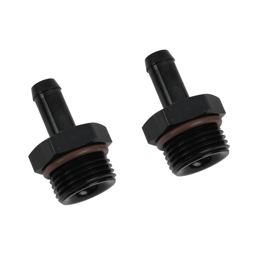 To simplifying aftermarket -AN hose plumbing, the 10 AN ORB threaded feed port features a low-profile 8 AN male fitting, and the 8 AN ORB threaded return port features a low-profile 6 AN male fitting. To reconnect the OEM return and vent hoses, 8.5mm barb fittings are also included. No permanent modification to the OEM fuel tank access cover is required.
