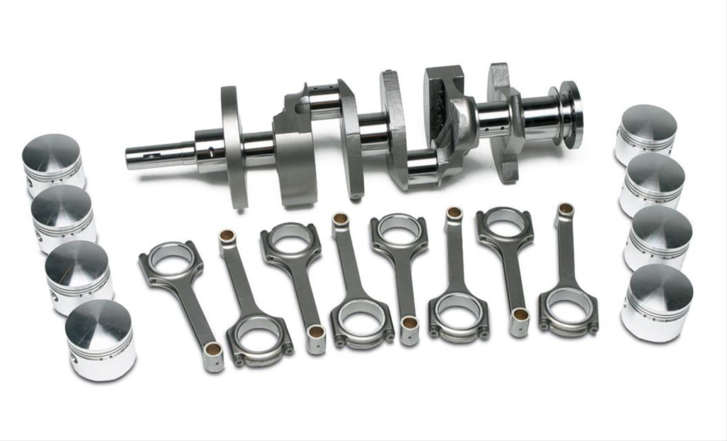 Scat engine rotating assemblies are available with either a high-quality Scat forged 4340 crankshaft or Scat's Series 9000 cast crankshaft, plus I-beam or H-beam connecting rods with 7/16 in. or 3/8 in. cap screw bolts. For maximum power and reliability, Scat adds rod and main bearings from King, Federal Mogul, or Clevite 77, depending upon the application—and pistons and piston rings made by such well-known manufacturers as SRP/JE, Ross, KB, Mahle, Diamond, and Probe. Kits with cast and standard forged pistons have standard rings; kits with premium forged pistons have file-fit rings. Nearly 800 Scat kits are available; order the package tailored for fitment with your engine application.Brand: SCAT Engine Components