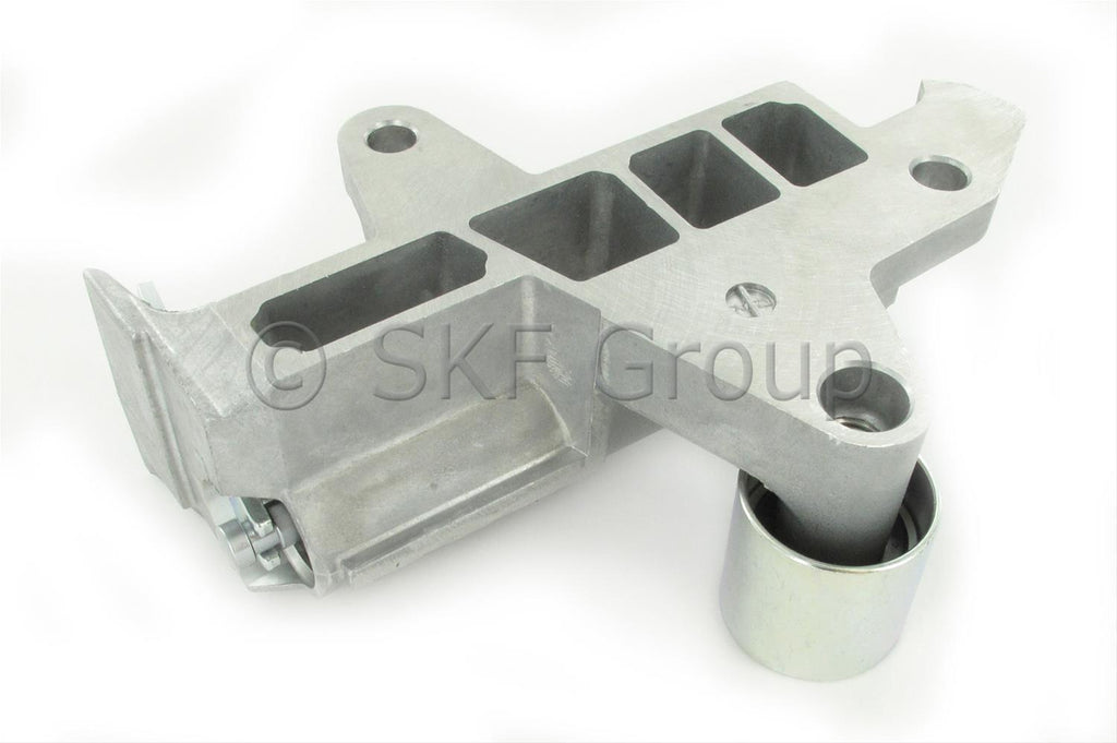 SKF's timing belt tensioners feature their sealed-for-life design that ensures problem-free operation. They are manufactured with high performance grease to handle high-stress environments with minimum noise and vibration. SKF Bearings timing belt tensioners deliver the quality and design you can count on with proven performance on the most popular applications.Brand: SKF Bearings
