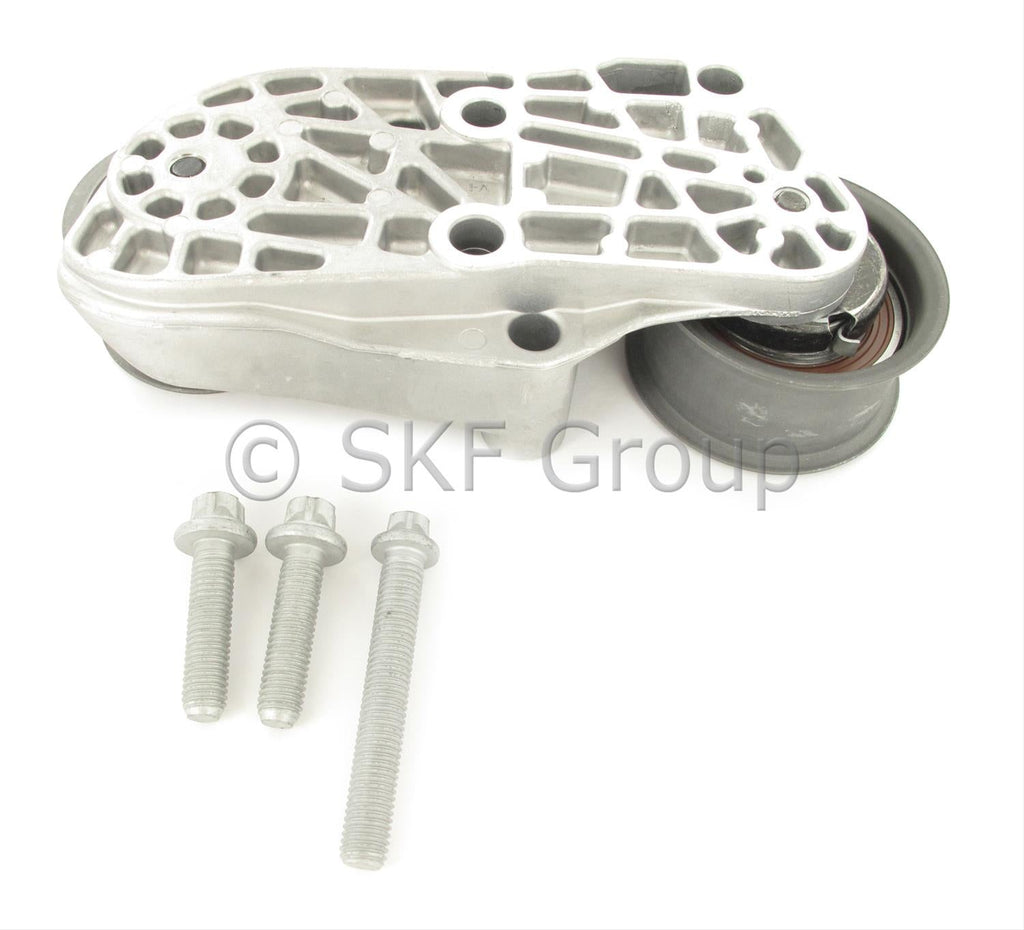 SKF's timing belt tensioners feature their sealed-for-life design that ensures problem-free operation. They are manufactured with high performance grease to handle high-stress environments with minimum noise and vibration. SKF Bearings timing belt tensioners deliver the quality and design you can count on with proven performance on the most popular applications.