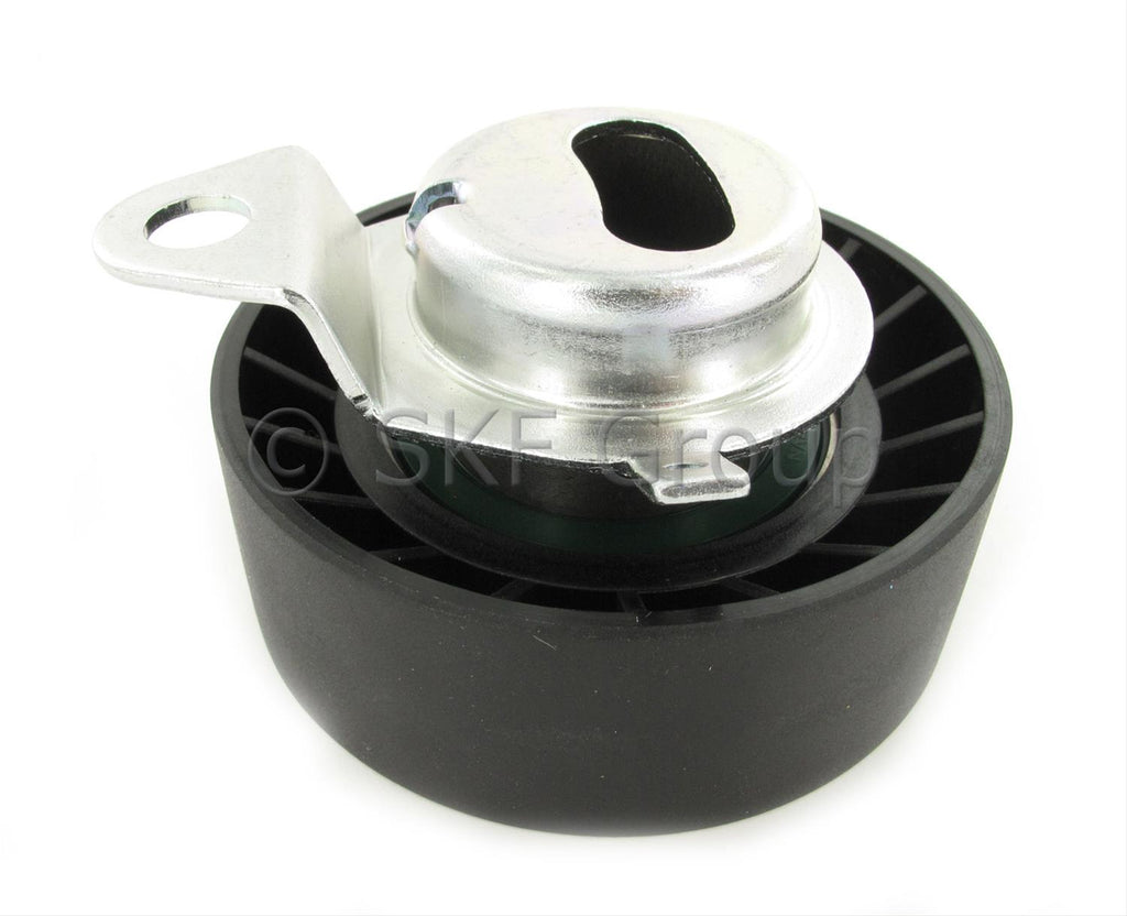SKF's timing belt tensioners feature their sealed-for-life design that ensures problem-free operation. They are manufactured with high performance grease to handle high-stress environments with minimum noise and vibration. SKF Bearings timing belt tensioners deliver the quality and design you can count on with proven performance on the most popular applications.