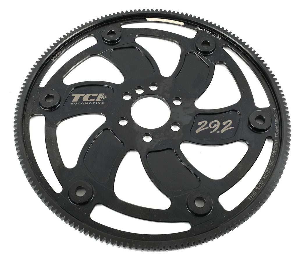 Whether you need stock, stamped, or heavy-duty, TCI forged flexplates are your performance solution. TCI offers popular Chrysler, Ford, and Chevy applications. Their forged selection for Chrysler includes special counterbalanced flexplates for neutral balance torque converters in cast crank applications that came with a counterbalanced torque converter. For Ford applications, TCI offers OEM-style small block plates built to precise standards with extra-thick welds to retain starter ring gear, and they are precision-balanced. Their Chevy stamped flexplates are built thicker than stock from high-tensile strength materials with extra welding to help retain the starter ring gear, and to withstand the stress of high-rpm engines and high-stall converters. For high performance, buzzing around at high rpm requires the confidence of TCI forged flexplates.Brand: TCI Auto