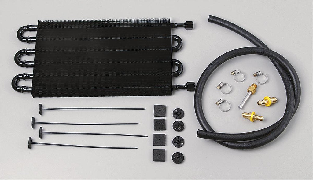 TCI performance transmission coolers can save you and your transmission from overheating. They are perfect for anything from a strip-only car to a big, heavy tow vehicle. Their lightweight aluminum design makes mounting easy, and is excellent for dissipating heat. These coolers feature a good looking, durable, black powdercoated finish, plus AN fittings to connect to either stainless steel braided or high-pressure hose. To ensure that they'll work in the most extreme conditions, TCI has the coolers pressure-checked to 300 psi. A mounting kit is included.Brand: TCI Auto
