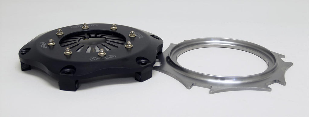 Tilton OT-II metallic pressure plate kits offer low moment-of-inertia, high-torque capacity, and the reliability necessary for championship performance. Popular for road racing and Circle Track, these assemblies feature open one-piece clutch covers that provide a low operating temperature, high strength, and minimal deflection. They come with diaphragm spring, floater plate(s), and your choice of high or ultra-high ratio pressure plate options. They also offer a choice of spring weight options to tune your clutch to your application. Successful shifts start with Tilton OT-II metallic pressure plate kits.Brand: Tilton Engineering