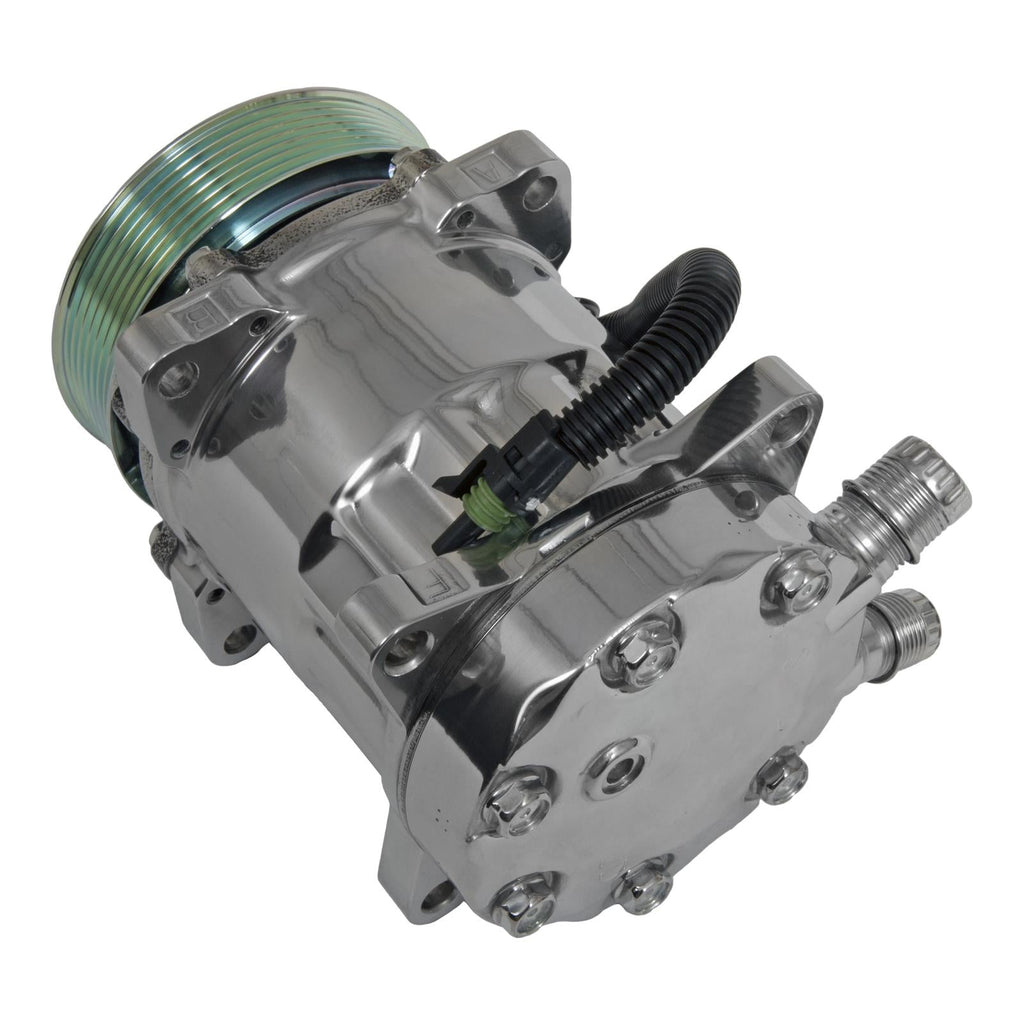 These Vintage Air air conditioning compressors are 100 percent all-new, not rebuilt, making them the best quality compressors on the market. The perfect choice to power your air conditioning system, they put out 8.4 cu. in. per revolution with a maximum 6,000 sustained rpm range. The compressors are available in standard or polished finishes and can be ordered with a V-groove or serpentine groove pulley. Vintage Air air conditioning compressors are designed to bolt in using Vintage Air's air conditioning bracket assembly .Brand: Vintage Air