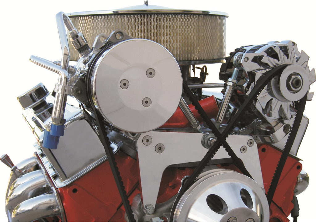 Notes: Will not fit Vortec engines. Mounts to water pump and intake manifold.