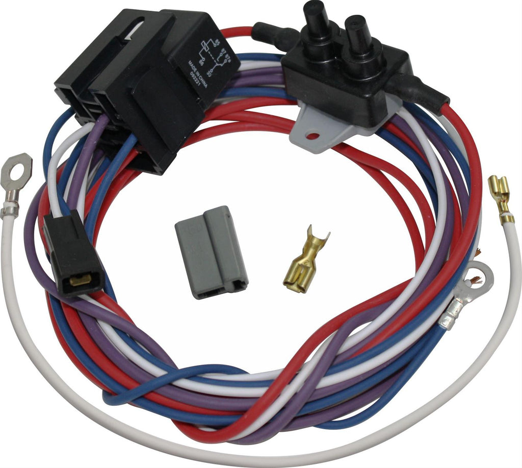 These electric fan wiring kits from Vintage Air allow direct current to the fan without placing an excessive load on the fan switch. It also prevents current feedback from a coasting fan that can cause engine to run on briefly after the ignition is shut off. Vintage Air offers a standard or a heavy-duty wiring kit to suit your specific application needs. The standard wiring kit is for single electric fans, and the heavy duty wiring kit is for dual electric fans.Brand: Vintage Air