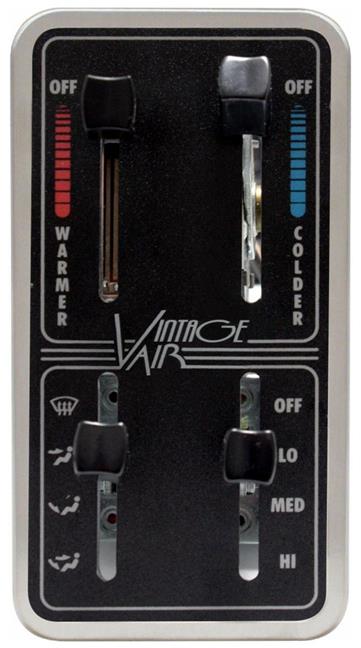 Vintage Air Gen-II base model 4-lever controls have no vacuum lines--just easy plug-in connections with fewer wires to route for a simple switch to high-tech cool. These standard panels operate Vintage Air's exclusive servo-actuated heater valve, which allows for the introduction of small amounts of heat to regulate air temperature. Gen-II delivers true OEM-style louver air temperature regulation and bi-level operation of your a/c and heat modes. These basic panels have a slightly larger face and are available in vertical and horizontal styles. Upgrade from your existing vacuum system panels to fingertip panel control with Gen-II.Brand: Vintage Air