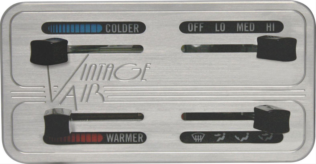 Upgrade your cool with Gen-II machined face panels. These aluminum slide control panels put just-right temperatures for your Gen-II system at your fingertips. These stylish panels sport the Vintage Air logo and are internally lighted for an even cooler effect. Choose between horizontal and vertical designs for your interior. Switch up the style in your interior with machined face panels for your Gen-II system from Vintage Air.Brand: Vintage Air