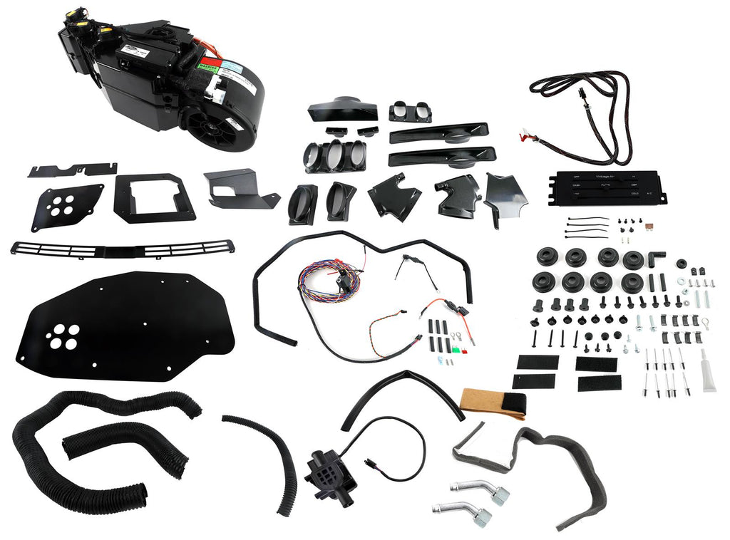 Vintage Air Gen-V SureFit evaporator kits the evaporator unit and mounting brackets, louvers (where required), duct hose wiring harness, hardware and installation instructions, along with either a bolt-in replacement control panel or Vintage Air's patented electronic cable converters to use with your factory system controls. Choose the kit designed for your vehicle.