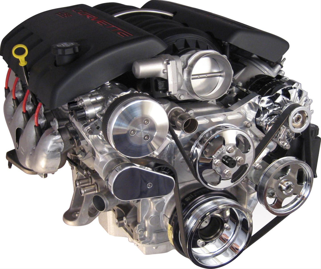 Vintage Air offers all-in-one Front Runner engine drive systems for your LS Chevy! Focusing on race technology and performance, their LS Front Runner systems provide a more dependable serpentine belt design in a super compact block mounted package. Being the smallest component package available, engine swaps into older vehicles is a lot easier! Vintage Air drive systems are available for power steering with or without pump and non-power steering applications in your choice of bright or black hard coat finishes.