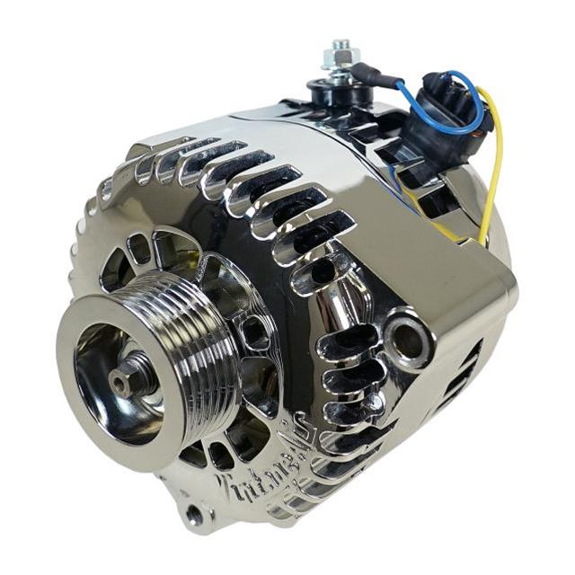 Vintage Air Mechman replacement alternators are designed specifically for their Front Runner systems. These alternators boast 170 amps and crank out 120 amps at idle. They include a serpentine pulley and are internally regulated. They require a 4-gauge wire to the battery and to a 12 V ignition source. Vintage Air Mechman replacement alternators are available in natural, polished, and chrome finishes.Brand: Vintage Air