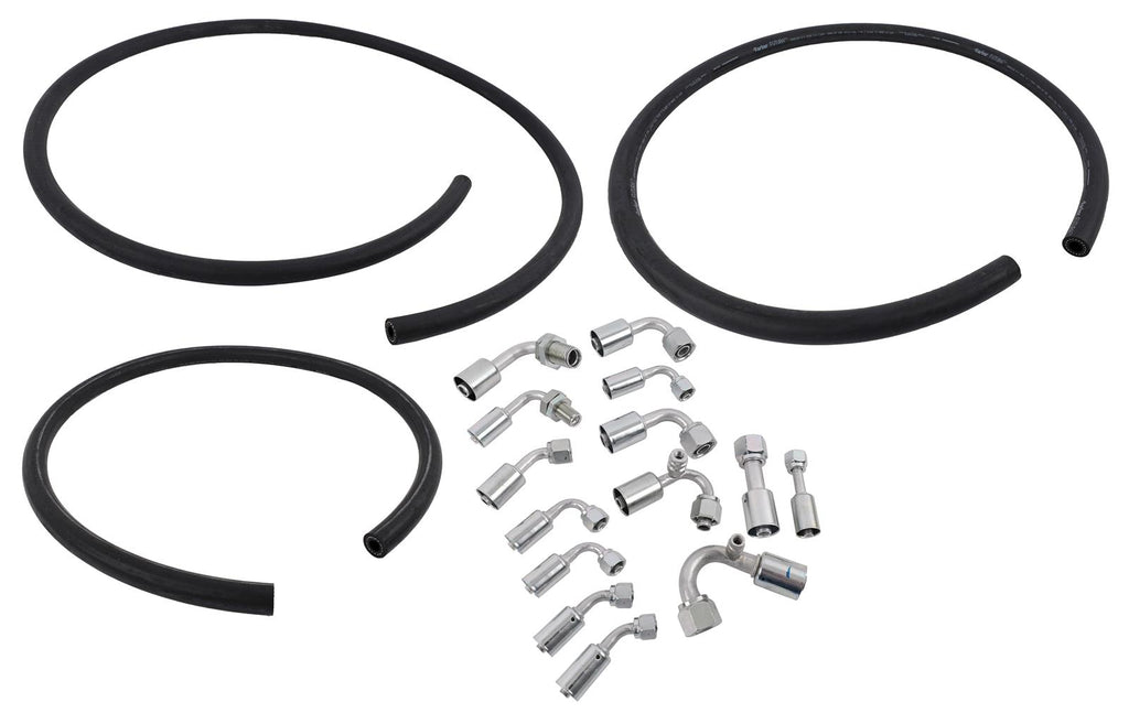Notes: This kit includes 6 ft. of -6 AN, 4 ft. of -8 AN, and 5 ft. of -10 AN barrier hose without a drier.