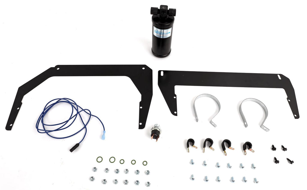 Notes: Kit includes drier and clamp. Intended for SureFit kit applications, does not have OEM fittings. Hard lines included to engine compartment. Binary switch also included. Dimensions listed are core dimensions and not true overall size.