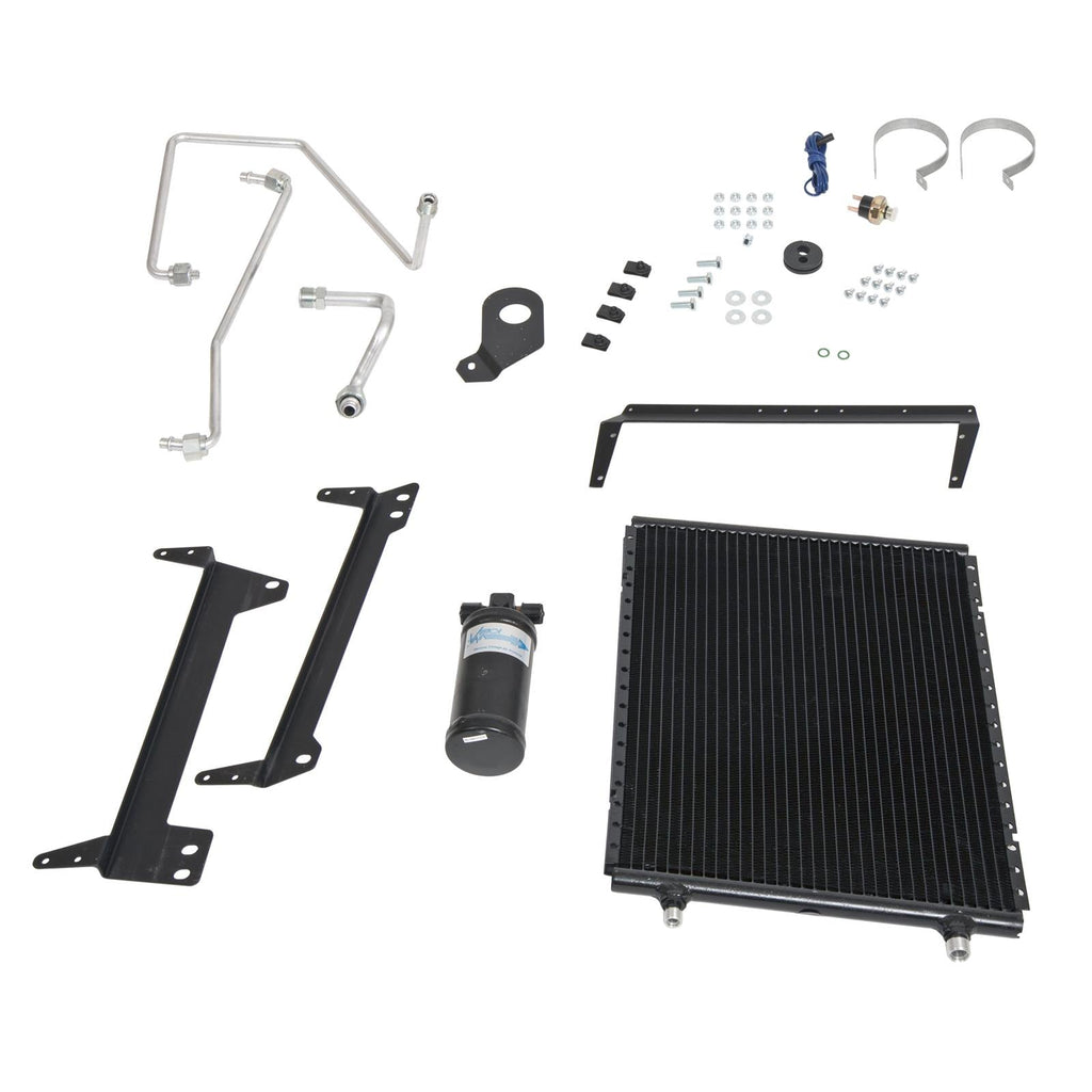 Notes: Kit includes drier. Intended for SureFit kit applications. Does not have OEM fittings. Hard lines included to engine compartment. Binary switch also included. Dimensions listed are core dimensions and not true overall size.