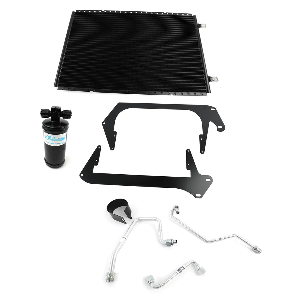 Notes: Kit includes drier. Intended for SureFit kit applications, does not have OEM fittings. Hard lines included to engine compartment. Binary switch also included. Dimensions listed are core dimensions and not true overall size.