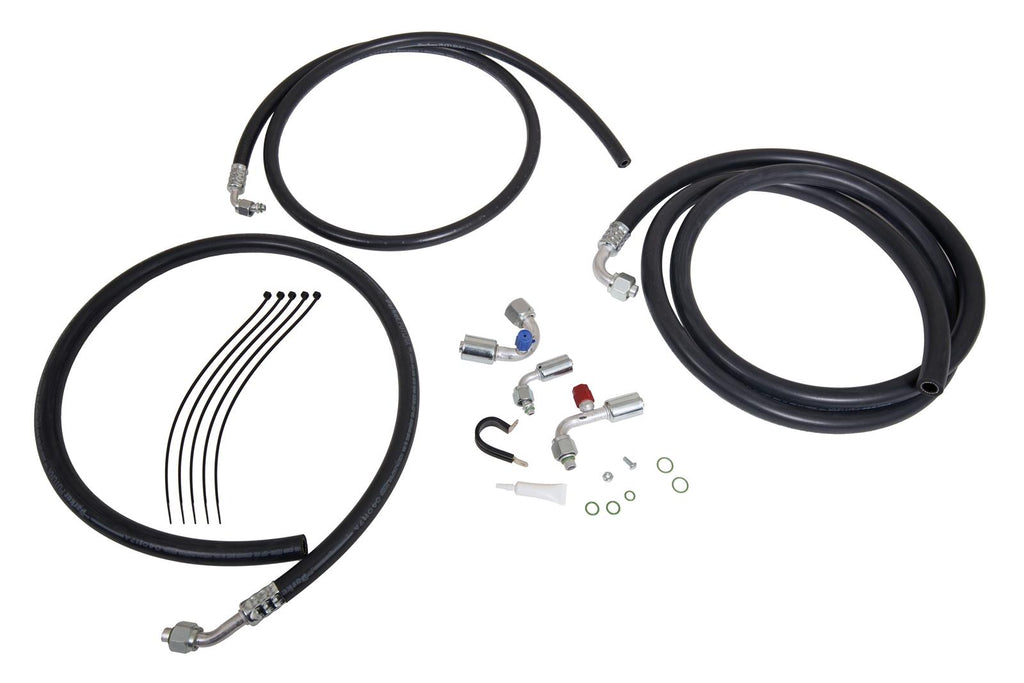 Notes: Fits with 134A models. kits. Includes fittings and lines in -6 AN, -8 AN, and -10 AN. O-rings, clamp, tie wrap, nuts, screws, and a refrigerant oil tube are also included.