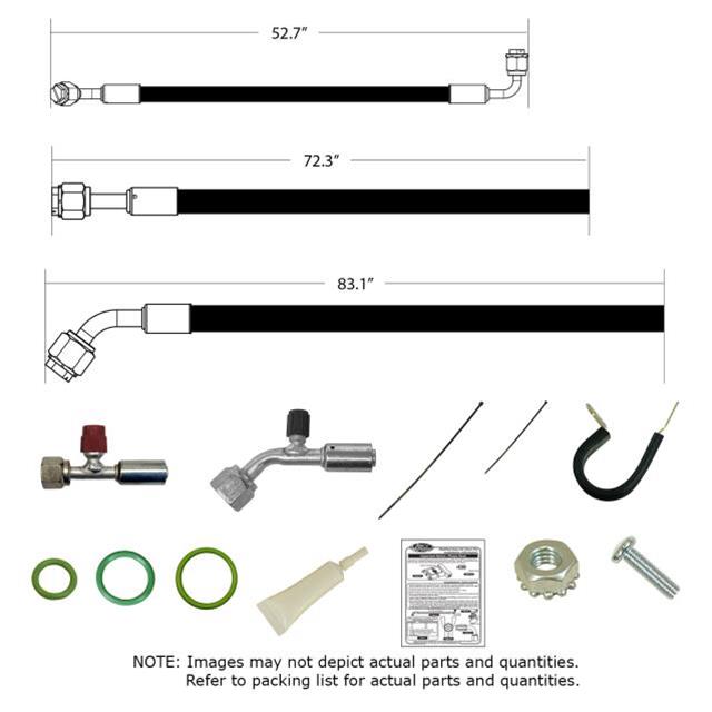 Notes: This modified reduced barrier hose kit is designed for use with a complete Gen IV or Gen 5 SureFit system in vehicles without a stock engine compartment configuration and core support. The kit contains refrigerant hoses with pre-crimped reduced barrier beadlock fittings on 1 end with the other end open to accommodate a custom installation.