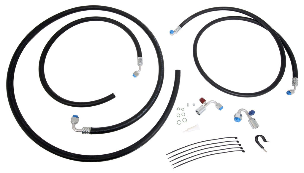 Notes: This modified reduced barrier hose kit is designed for use with a complete Gen IV SureFit system in vehicles without a stock engine compartment configuration and core support. The kit contains refrigerant hoses with pre-crimped reduced barrier beadlock fittings on 1 end with the other end open to accommodate a custom installation.